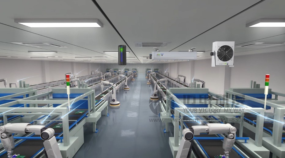 迈维动漫公司专注于高品质产线智能仓储生产工艺三维动画设计。为苏州市碧海永乐净化科技有限公司构建可视化营销工具,通过视频的方式,让客户一目了然的了解产线智能仓储的仓库生长拼装及智能仓库运输带运输货物的流程。