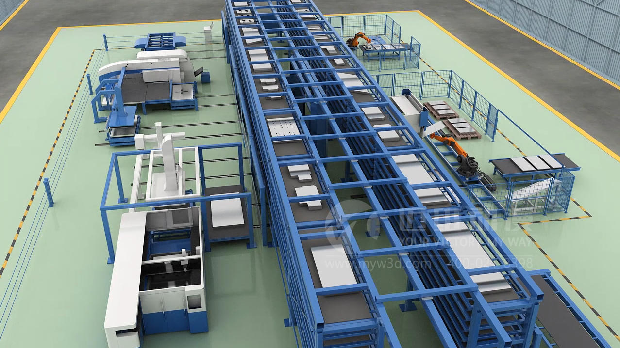 金属板材柔性加工系统生产线三维动画