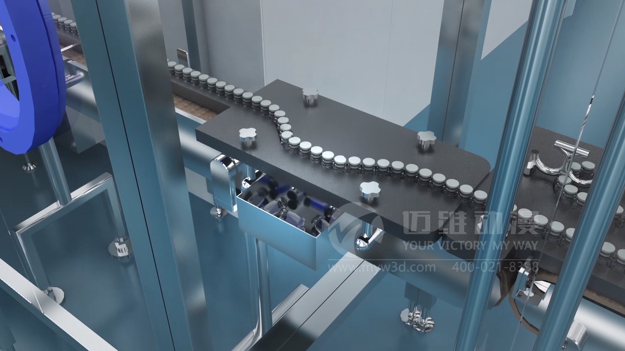 迈维动漫公司专注于高品质白酒灌装生产线三维动画设计。通过3D动画展示白酒灌装的整条生产线。动画模拟微裂纹检测设备、冲瓶机、沥干机、灌装机、异物检测、压盖设备的作业状态。