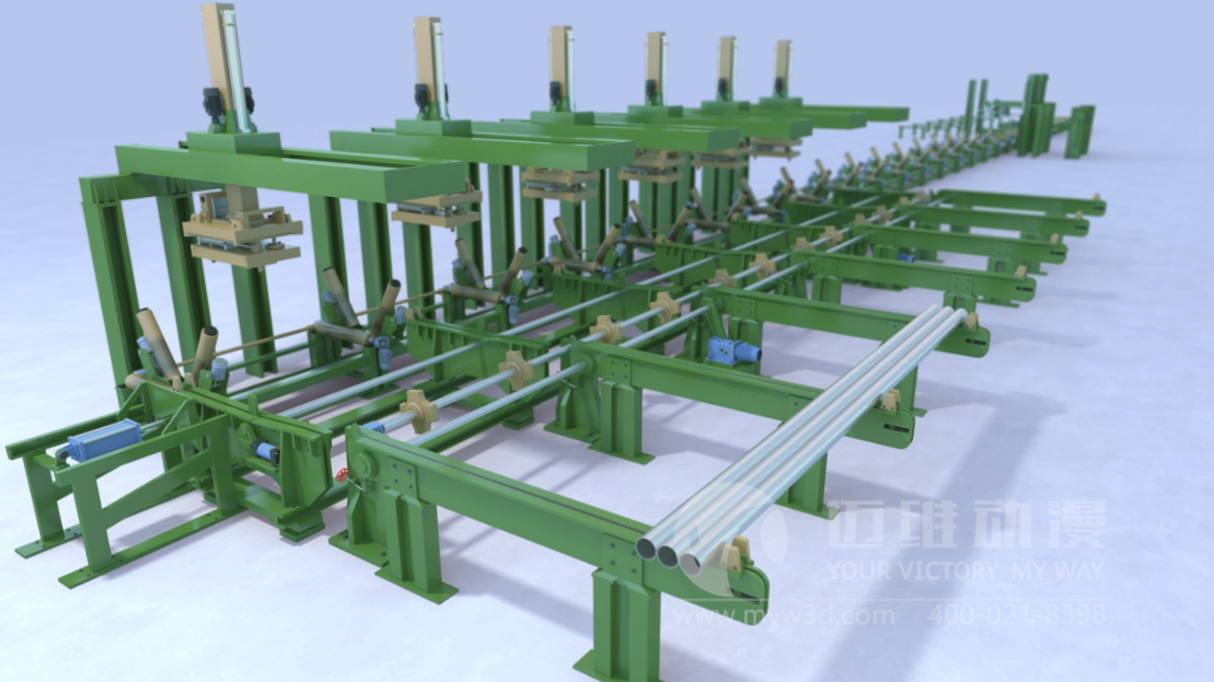三维动画技术将复杂的钢管打卷生产线流程变得生动直观,完整介绍了生产线的运行效率,便于客户了解生产线流程。迈维动漫生产工艺三维动画是采用3D虚拟技术,模拟实际生产产品的标准化生产过程的3D动画。它可以帮助企业规范(培训)生产工艺流程,更可展示公司自身的实力水准!