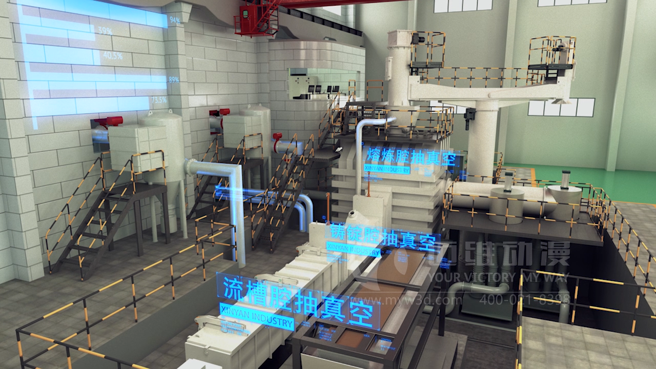 迈维动漫公司专注于高品质真空炉生产工艺三维动画设计。采用先进的3D动画技术,将真空感应熔炼系统的整体生产流程展示、型号展示、功能模块展示、生产操作全程可视化、自动化等通过三维动画的形式直观展现。